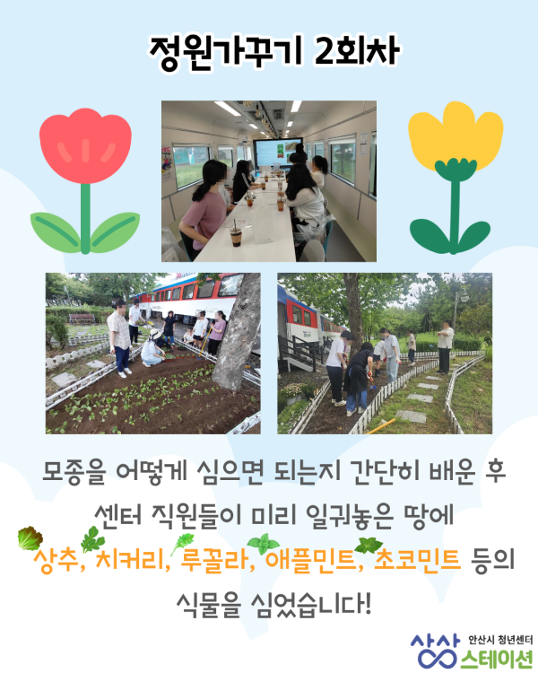 식물에 대한 관심이 있고 대화 나누는 것을 좋아하는 청년들을 모집하여 장기간의 커뮤니티 정원 가꾸기를 진행했습니다 :)
