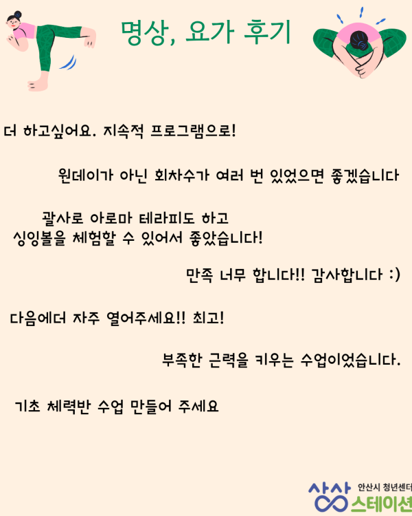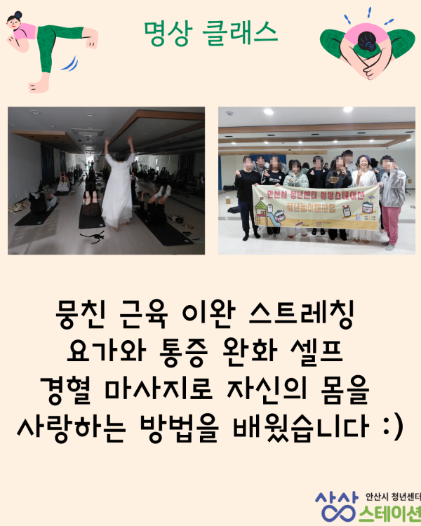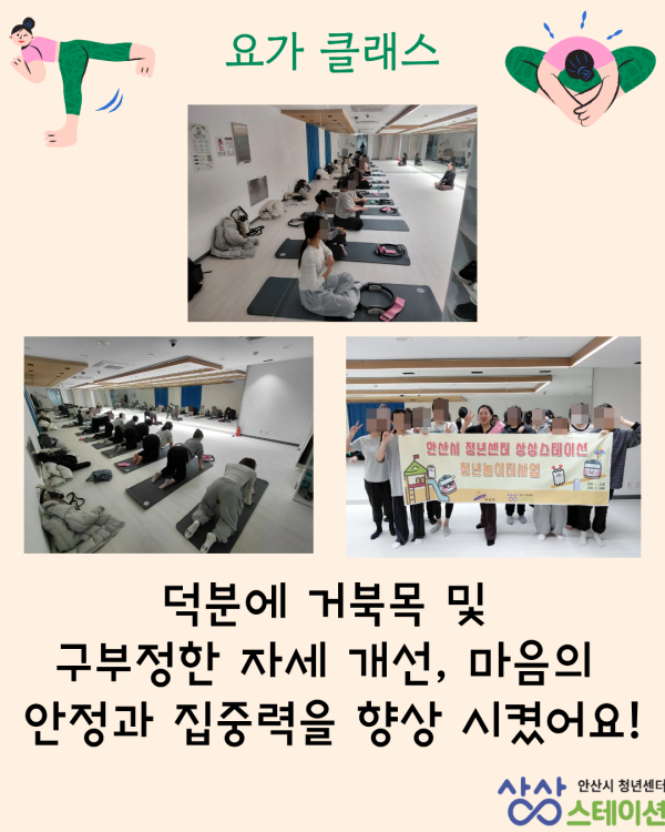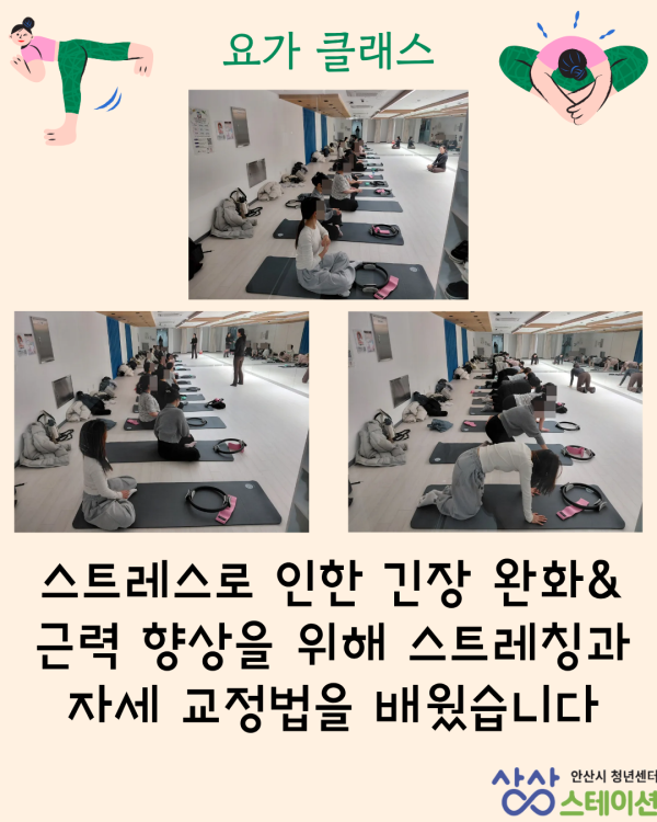 청년들이 일상생활에서 지쳤던 몸을 릴렉스하고 교정할 수 있는