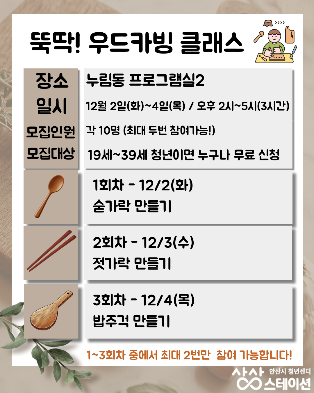 12월 3일(수) 오후 2시~5시 (정원은 10명이며, 11번째 신청자분들 부터는 취소자리 발생시에만 연락드리겠습니다!)