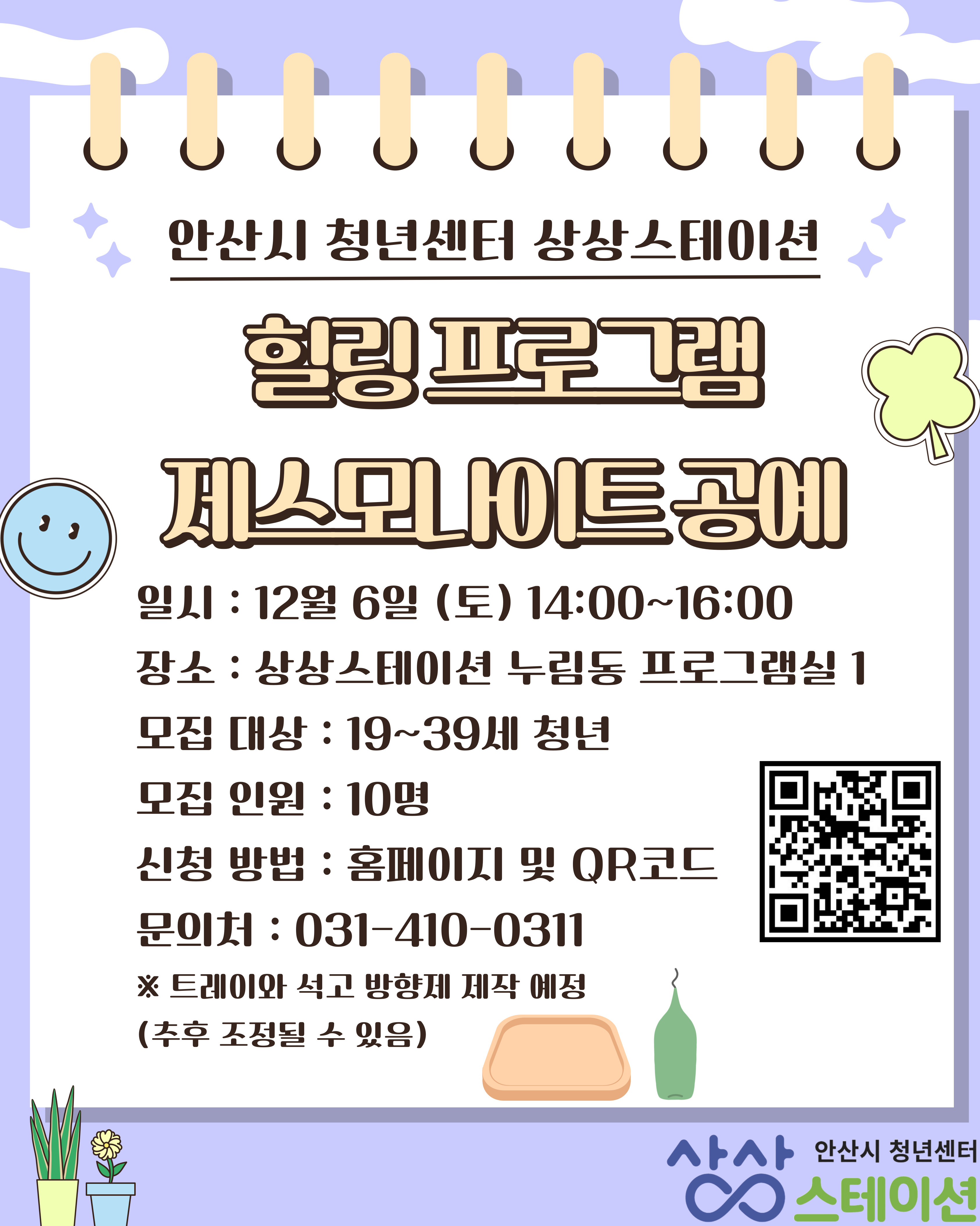 12월 6일(토) 오후 2시~ 4시 제스모나이트 공예 진행합니다 :) (정원은 10명이며, 11번째 신청자분들 부터는 취소자리 발생시에만 연락드리겠습니다!)