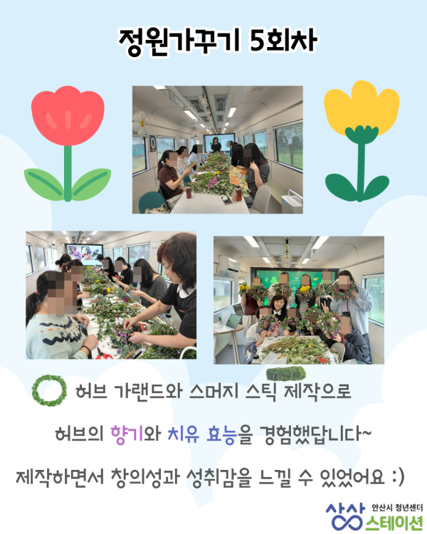 청년들이 길면서도 짧았던 10회차에 참여하면서 창의성을 올리고 지식 습득을 할 수 있었으며 스트레스 해소에도 도움이 되었습니다.