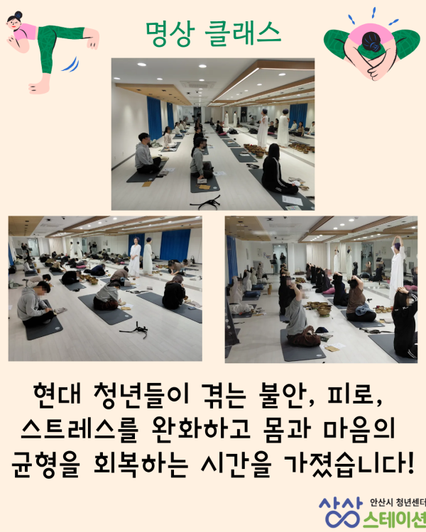 청년들이 일상생활에서 지쳤던 몸을 릴렉스하고 교정할 수 있는