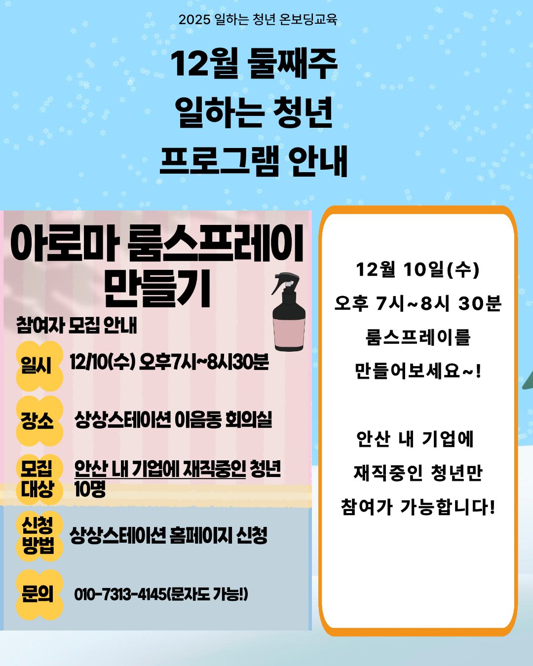 12월 10일 수요일 오후 5시~6시 ★정원은 10명이며, 11번째 신청자부터는 대기자입니다★