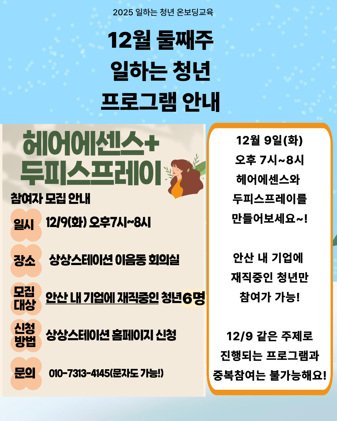 12월 12일(금요일) 오후 1시30분~3시, ★정원은 10명이며, 11번째 신청자부터는 대기자입니다★